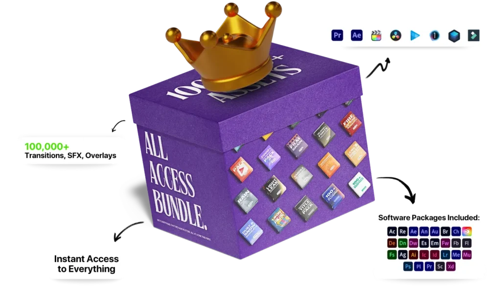 Get over 70 GB of video editing assets, including transitions, overlays, fonts, LUTs, FX, premade templates, and premium software like Premiere Pro, After Effects, and six additional Adobe products. On top of that, get a full-fledged video editing course to get you started.